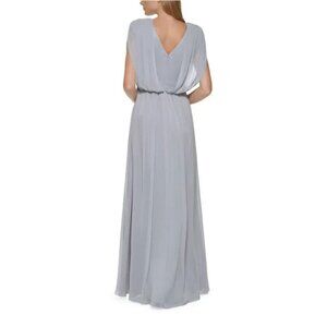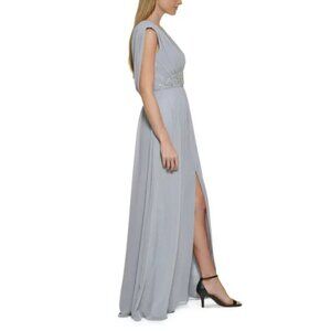 NWTD ELIZA J Size 6 Silver Beaded Zippered Tie Back Evening Gown Dress MSRP$198