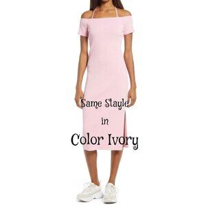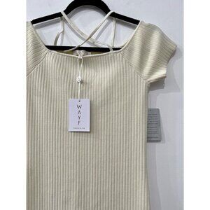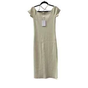 NWTD WAYF Size S Deena Off The Shoulder Rib Knit Midi Dress Ivory MSRP $65
