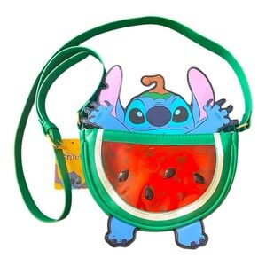 DISNEY-STITCH-adorable Stitch watermelon crossbody bag, clear watermelon front, adjustable strap, measures 9x9x2 inches, brand new with tags
