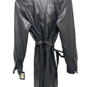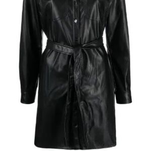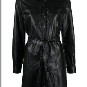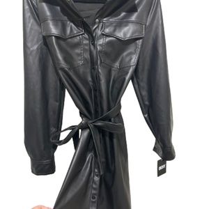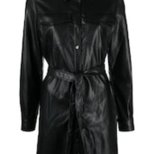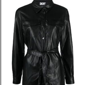 NWT_DKNY Long Sleeve Faux Leather Shirtdress Snap-Closure Belted Medium