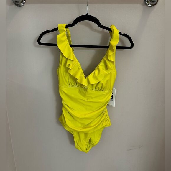 NWT DKNY Ruffle Plunge Underwire Tummy Control One-Piece Swimsuit
