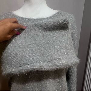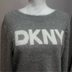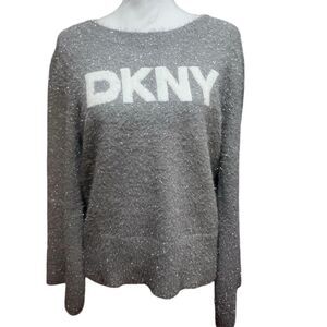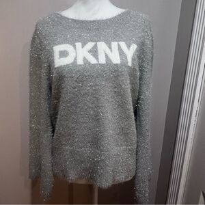 NWT DKNY Women's Metallic Sweater size large gray with bell sleeves