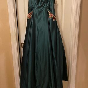 NWT David’s Bridal Satin Emerald Green Prom Dress