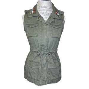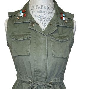 NWT Decree Women's Jeweled Utility Vest Jacket Olive Green Size S