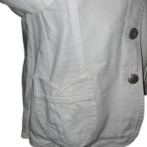 NWT-Denim & Co Large White Three Button Stretch Denim Blazer with Silver Buttons