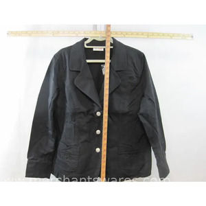 New with Tags - Denim& Co Women's Large Dark Black Three Button Stretch Denim Blazer with Silver Tone gorgeous and classy flowered buttons. Great jacket for JEANS! Cotton and Spandex