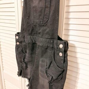 New with tag! 2Sable Black Distressed Short Overalls Cut off hem Adjustable straps Front and back pockets Size Medium