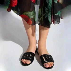 Made in Italy, these Dolce&Gabbana slides are crafted of smooth leather. This flat slip-on style is finished with an interlocking logo motif at the vamp.