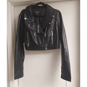 NWT~Dolls Kill Current Mood Black Vegan Leather Moto Jacket w/Silver Fringe XL