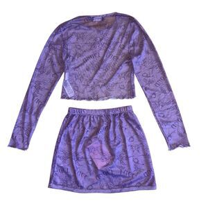 NWT Dolls Kill NGOrder Sheer Printed Crop Top Skirt Set in Purple Size Small UK8