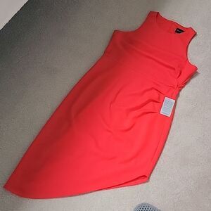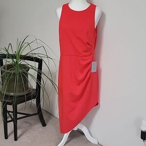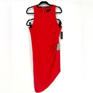 new with tags from Nordstrom. hot red, ruched on one side, lined. zipper up back. asymmetrical hemline
