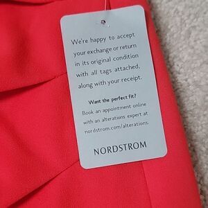 new with tags from Nordstrom. hot red, ruched on one side, lined. zipper up back. asymmetrical hemline