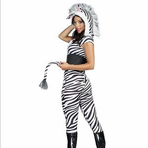 NWT Dreamgirl Zebralicious Pantsuit Hooded Onesie Zebra Costume XS