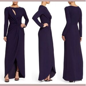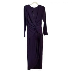 NWT Dress the Population Naomi Long Sleeve Twist Crepe Gown Sz XXS Boysenberry