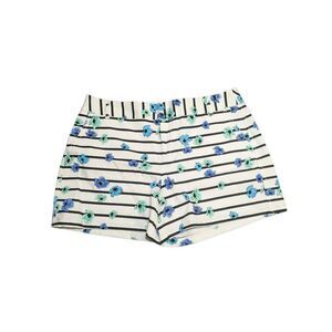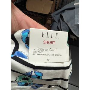 NWT ELLE White Black Blue Floral Striped Mid Waist Cotton Shorts 4" Inseam Women