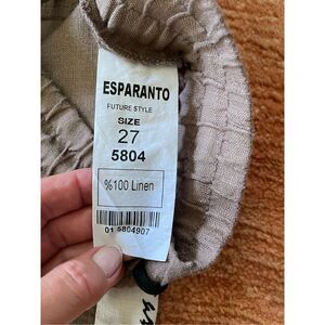 100% linen High quality Slits and stripes on the sides No pockets Drawstring at the waist Fashionable model from a European designer