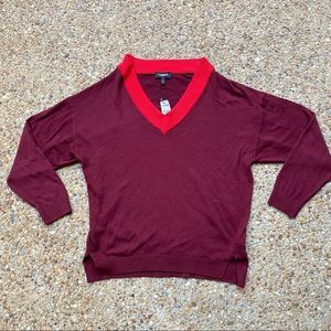 NWT EXPRESS Oversized Deep V-neck Soft Maroon & Red Sweater Size S