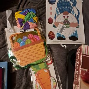 All NEW with Tags! Easter Baking Kitchen supplies with 2 new Nonstick cakelette pans with 3D Easter eggs & Easter Bunnies PLUS make 4 mini pies at one time with the mini pie pan PLUS springform set for layered fun desserts to bring more color to the table! Included are Easter Table decor plus bunny and basket balloons PLUS several window art Easter Window Cling REUSABLE Stickers Sheets Easter Gnome Theme Window Clings Decorations, Bunny Easter Eggs for Windows Gnome Easter Window Clings Decals for Easter Party Decorations Supplies re-usable