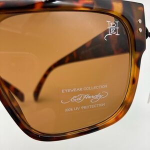 NWT Ed Hardy 100% Protection Immortals Style Shiny Tortoise Square Frame Unisex Sunglasses with Ed Hardy Monogram