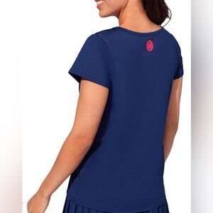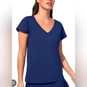 NWT EleVen Venus Williams Navy Blue Short Sleeve V Neck Blouse Top Shirt- Size M