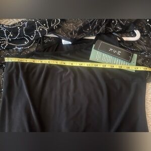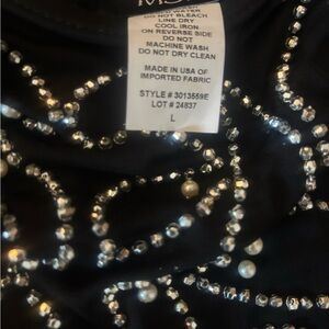Stunning black dress featuring a beaded overlay. Perfect for formal occasions.