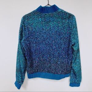 NWT Elie Tahari Sequin Leather Bomber Jacket Mermaidcore Metallic Blue S