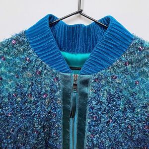 Elie Tahari Sparkly Embelished Sequin Long Sleeve Zip Up Bomber Jacket