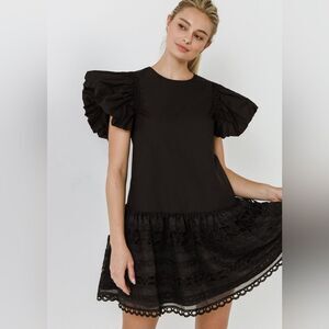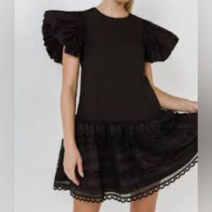 NWT Endless Rose Revolve womens mini dress with puff sleeve and lace size medium