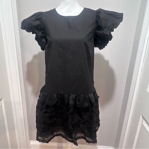Gorgeous lace detail with ruffle bottom and puff sleeve