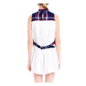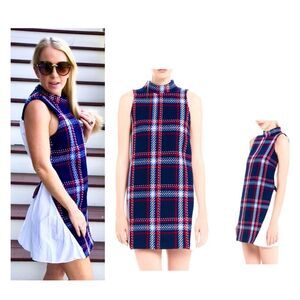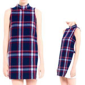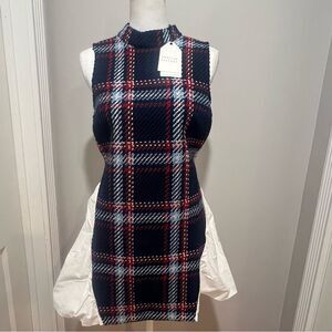 NWT English Factory Navy Plaid tweed shift dress with adjustable belt size large