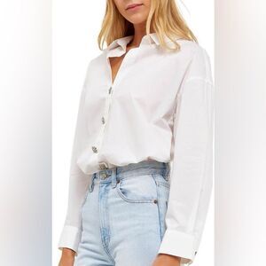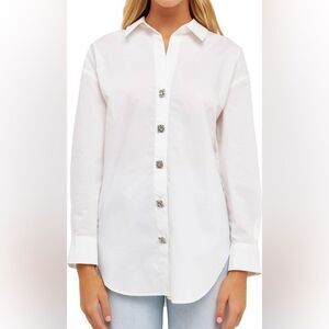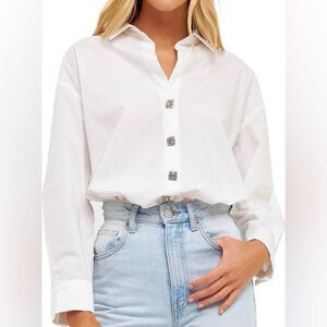 NWT English Factory poplin oversized crystal embellished button down sz medium