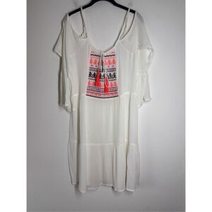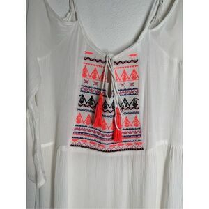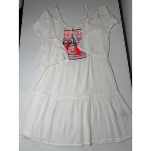 NWT Exist Women’s Bohemian Embroidered Mini Sheer White Dress Size S Tussles