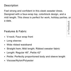 NWT Express Colorblock Faux Wrap Top Midi Sweater Dress XXS