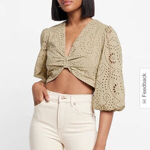 NWT Express Eyelet Puff Sleeve Cropped Top sz XS