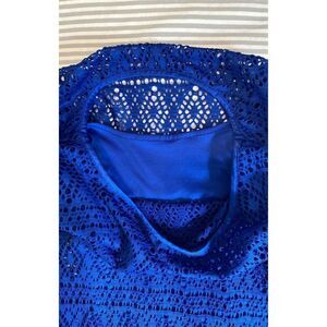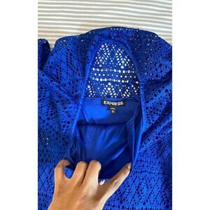 Express cobalt blue mesh knit dress with attached slip lining 3/4 Sleeve Scoop neck Knee length Size XS
