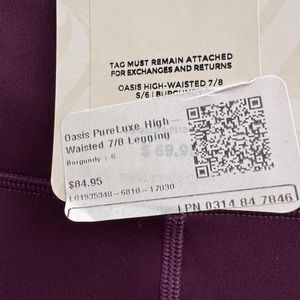 New with tags, Oasis PureLux Fabletics leggings, 7/8 length, never worn -fabulous color