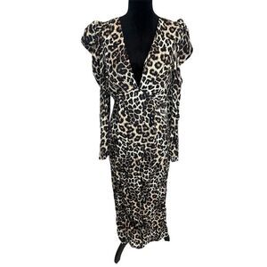 NWT FARM RIO LEOPARD PRINT MAXI MIDI DRESS DEEP V-NECK WOMENS SIZE MEDIUM