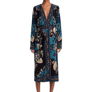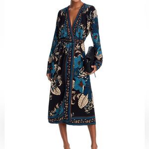 NWT FARM Rio Blossom Tapestry Black Midi Dress Women Size S