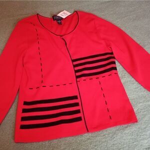 NWT FINITY M Red/Black Striped Cardigan One Button Long Sleeve Knit Open