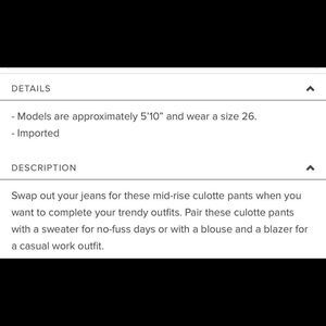 NWT FRANCESCA’S JOU JOU Mid Rise Culotte Pants Size 26