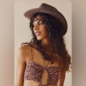 NWT FREE PEOPLE TRAIL SHADED COWBOY HAT X MOSSANT IN TOBACCO