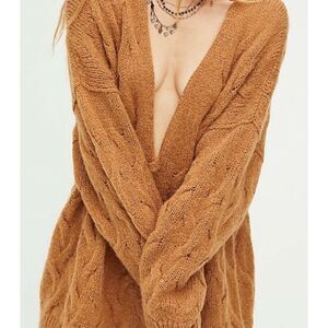 NWT FREE PEOPLE Sz S JUNE CABLE V NECK SWEATER LONGLINE SLOUCHY KNIT TUNIC