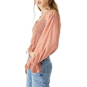 NWT FREE PEOPLE - M - Megan Crochet Top in Coral Sand
