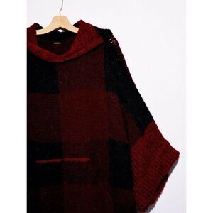 NWT FREE PEOPLE Sz M/L MEET ME PLAID PONCHO OVERSIZED HOODED ALPACA SWEATER.