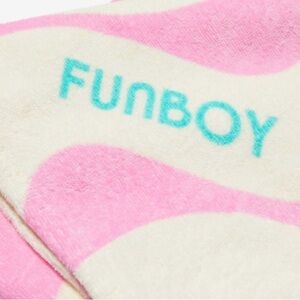 100% cotton pink leisure club beach towel, super cozy, soft and absorbent, Funboy original print, brand new, measures 68x30