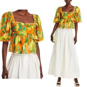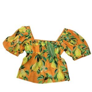 NWT Farm Rio Orange Chic Pears Short Sleeve Blouse Size Medium $148