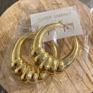 NWT Fashion Earrings Textured Hoop Earrings - Gold tone