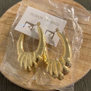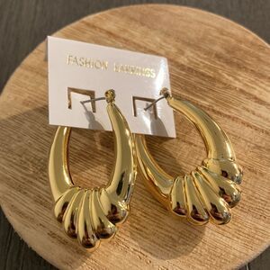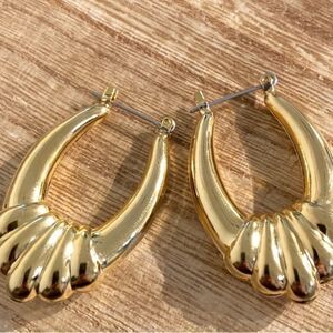 NWT Fashion Earrings Textured Oval Hoop Earrings - Gold tone