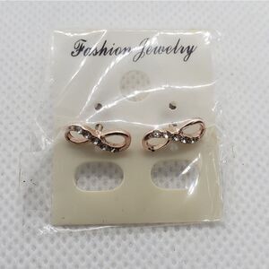 New with tag. Fashion Jewelry rose gold colored infinity earrings with rhinestones.