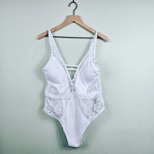 NWT Fashion Nova Brianne Lace Cutout One-Piece Swimsuit. White 1X